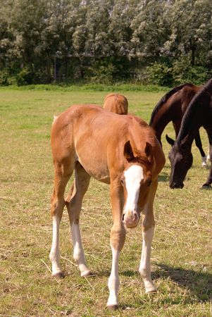 Foals on a summer pasture
