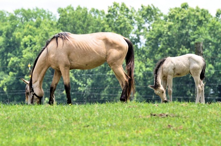 Colt with mare on pasture
