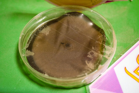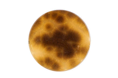 isolated bottom side of petri dish with aspergillus niger mold culture