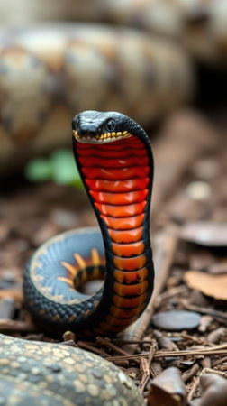Colorful snake displays its warning colors in natural habitat during daylight hours