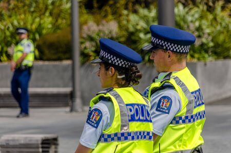 Wellington, New Zealand - October 28, 2018: Police on duty at the royal visit to the Wellington War Memorial in New Zealand.