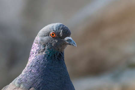 Head rock dove close up on blurred background.