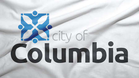 Columbia of Missouri of United States flag on the fabric texture background