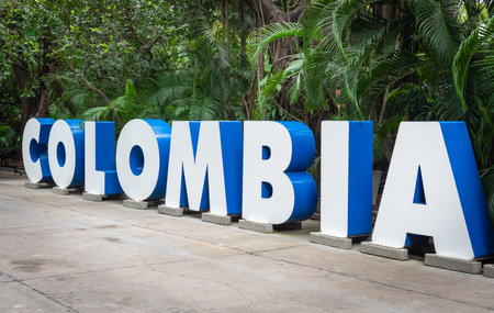 Big Colombia sign for tourism in Cartagena, Colombia.
