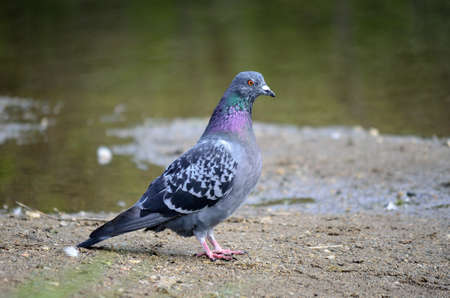 colourful pidgeon on pond shore close up
