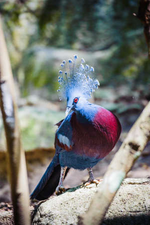 Victoria crowned pigeon. Birds watching. Portrait summer landscape