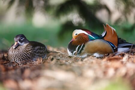 A pair of mandarin ducks. Small depth of field