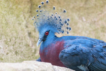 The Victoria crowned pigeon (Goura victoria), portrait of a big blue pigeon with a tuft on its head.