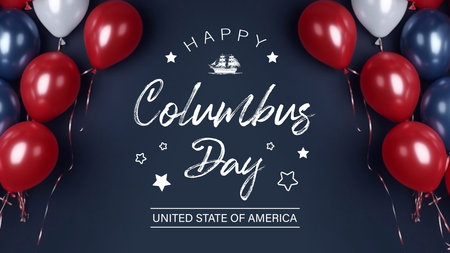 Happy Columbus Day Greeting Card. Holiday Background with Balloons and Stars. Vector Illustration.