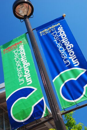 A banner welcomes guests to Columbus, Indiana