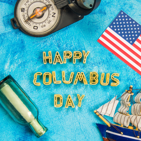 Happy Columbus Day text. Concept of the US holiday. The discoverer of America. Holiday States