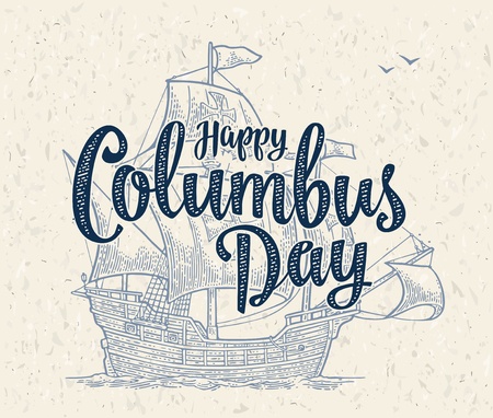 Columbus Day Background Design. Poster or Greeting Card. Vector Illustration.