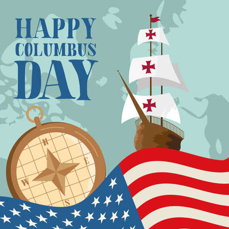happy columbus day celebration with usa flag and ship vector illustration design
