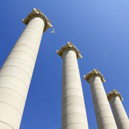 Four white columns near Royal palace The columns, symbolizing the four stripes of the Catalan flag