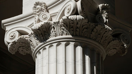 Architectural detail of marble ionic order columns