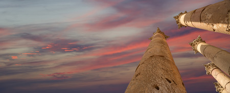 Roman Columns in in the Jordanian city of Jerash (Gerasa of Antiquity), capital and largest city of Jerash Governorate, Jordan