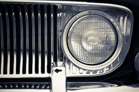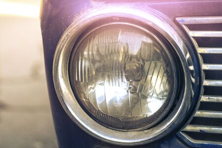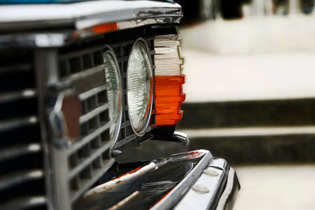 Aggressive old car closeup race. Automotive lamp. Generate Ai