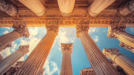 Classical architecture elements with decorative columns. Ideal for luxury, history, or architectural presentation themes.