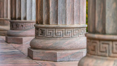 Columns of marble on a building pavilion showing architecture design and decorative structure with light and shadows