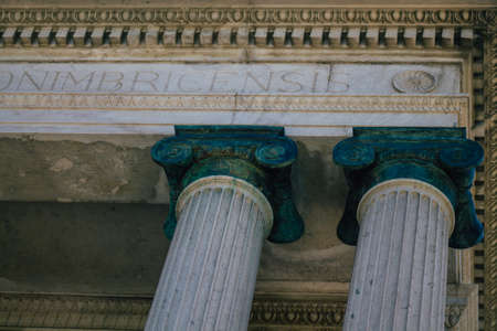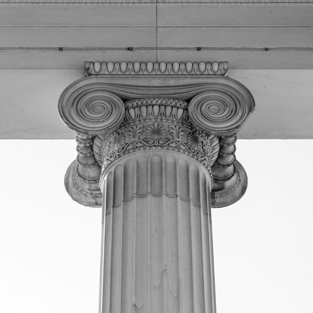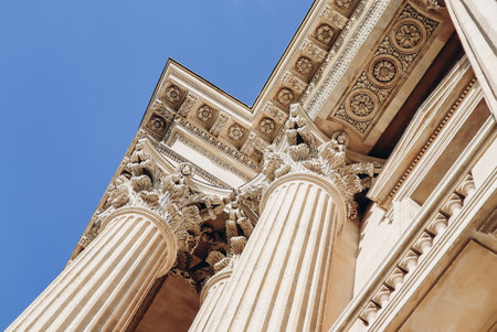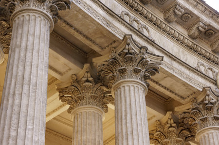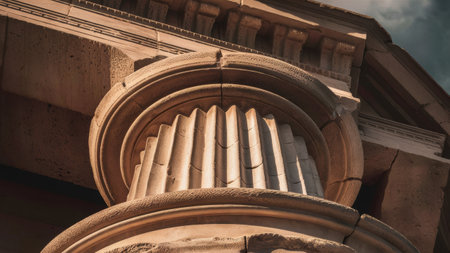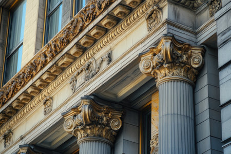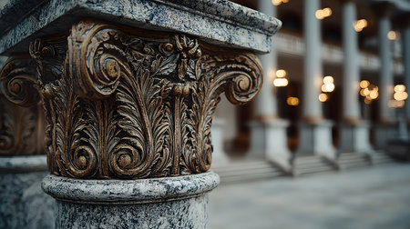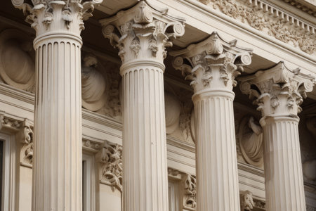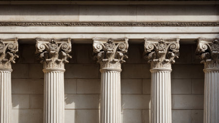 a close-up of a classical facade, with its intricate details and columns, created with generative ai