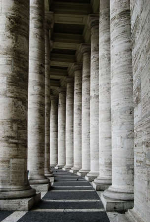 Colonnade of St Peters Square in Vatican City. Row of Old Big columns.