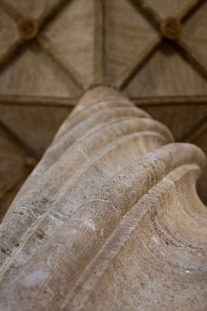 sophisticated sculptural column photographed from a close up angle in a civic monument, in a luxurious architecture photography style, with light granite tones, side shadowed light, high resolution