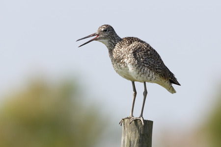 Willet Tringa semiplmata Perched on a Fence Post - Texas