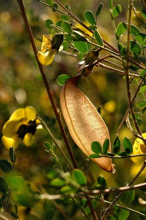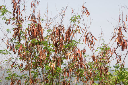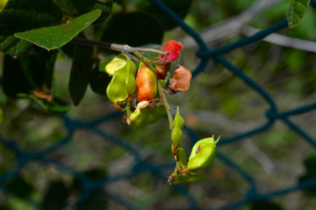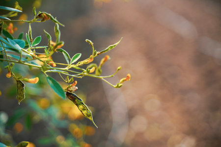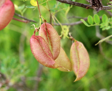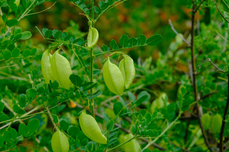 Beans on colutea arborescens branches in summer.
