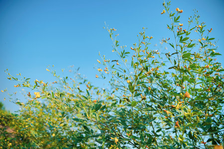 Hemp Fesbania yellow flower vegetable, Sesbania javanica blooming on garden nature background