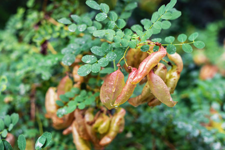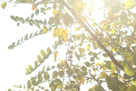 Small green tamarind leaf branch tree bush background