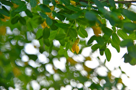 Beautiful yellow scrambled eggs, kalamona (Cassia surattensis) flower on tree with nature background.