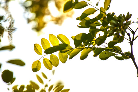 Leaf of Caesalpinia plant in a sunny day. Floral background