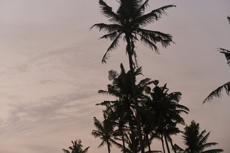 Beauty coconut palms in Arambol village in north Goa in India at sunset