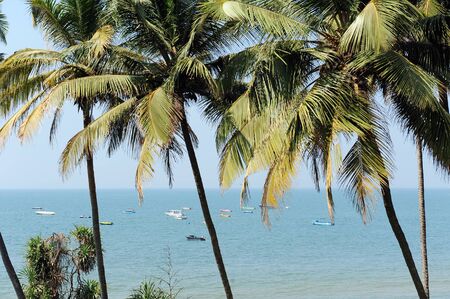Palm trees on the beach in Goa, South India, tropical west coast, Arabian Sea in Asia, vacation destination