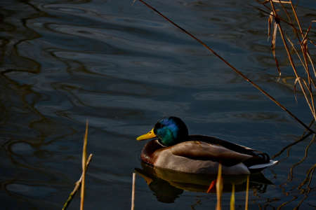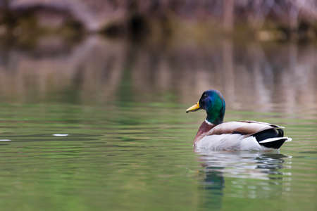 Male of Anas platyrhynchos, commonly known as Mallard duck swimming on a lake