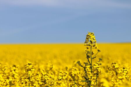 Blooming rapeseed. Economic importance in the production of biodiesel and oil. Agricultural background with copy space