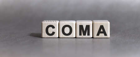 Coma word on medical cubes on white background.