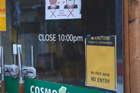 Closed businesses for CoronaVirus pandemic outbreak. Government shutdown of restaurants, shopping stores, non essential services.