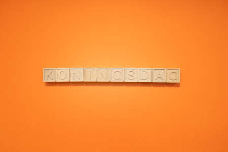 Inscription on wooden cubes Koningsdag. English translation King's Day. Koningsdag or Kings Day Concept