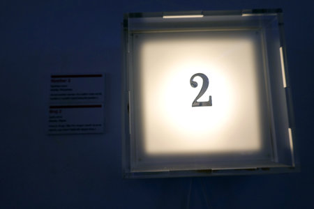 Number two in a light box at the entrance of a hospital.