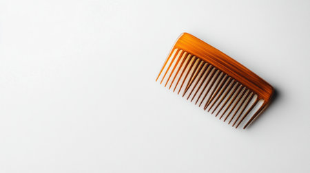 A finely crafted brown comb lies on a smooth surface, with soft shadows highlighting its elegant design and texture, suggesting calm and organization.