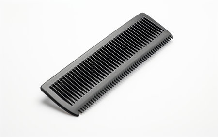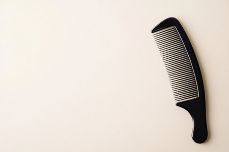 A black comb placed elegantly on a neutral background highlights its smooth design and practical functionality, ideal for grooming.