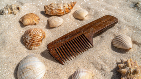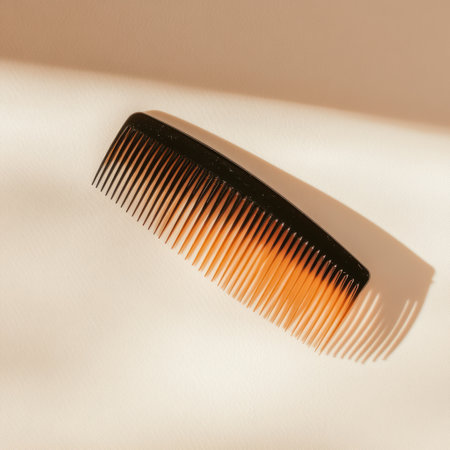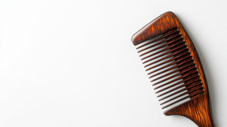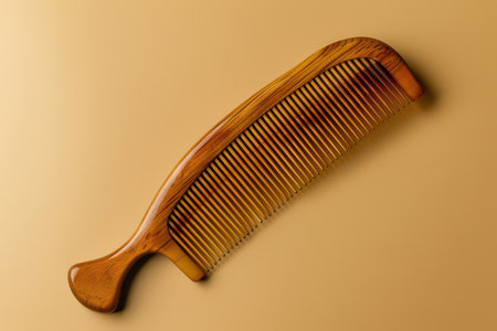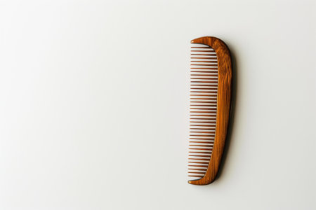 A finely crafted brown comb lies on a smooth surface, with soft shadows highlighting its elegant design and texture, suggesting calm and organization.