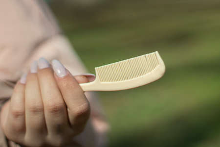 Comb with hair loss, health problem, issue of aging, alopecia areata due to stress or infection, hairbrush