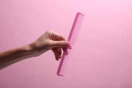 Mannequin hand holding comb on colorful background. minimalism beauty concept