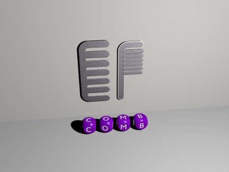 3D illustration of COMB graphics and text made by metallic dice letters for the related meanings of the concept and presentations. background and hair