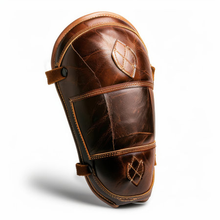 This vintage leather protective gear exudes craftsmanship and durability, perfect for sports enthusiasts seeking quality equipment for outdoor activities and training sessions.