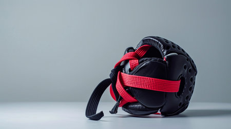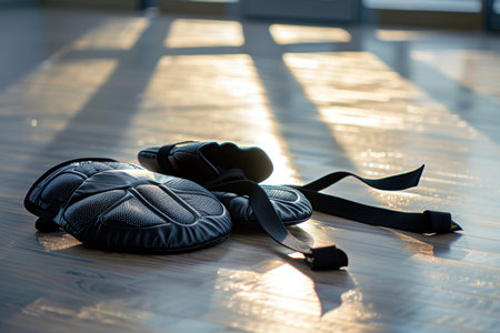 Martial Arts Gear in Modern Gym with Black Belt and Sparring Pads Display