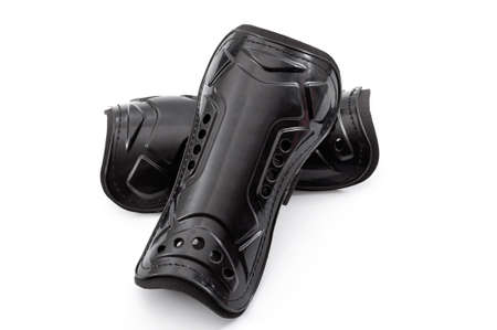 Protective sports gear for athletes, black leg pads designed for optimum safety and comfort during active gameplay and training sessions in various sports