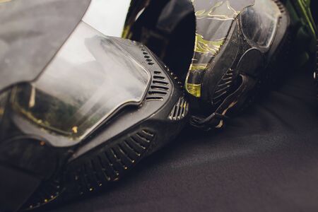 black and green paintball helmet. Mask, a helmet for a game in a paintball.